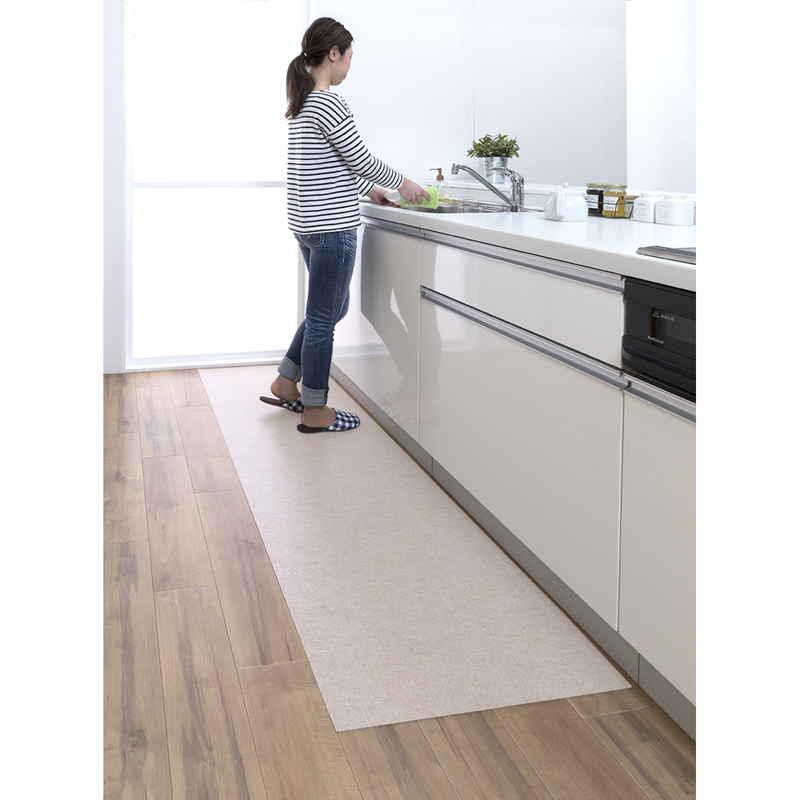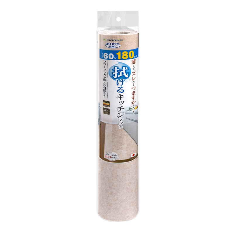 サンコー キッチンマット 吸着拭けるキッチンマット 60×180cm 無地 ベージュ