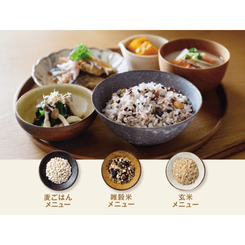 ビタミン、ミネラル、食物繊維など様々な栄養素をとることのできる雑穀米をはじめ、もち麦や押し麦、玄米をおいしく炊き上げることができます。