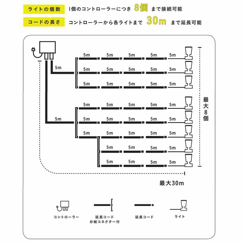・1個のコントローラーにつきひかりノベーションライト8個まで接続可能