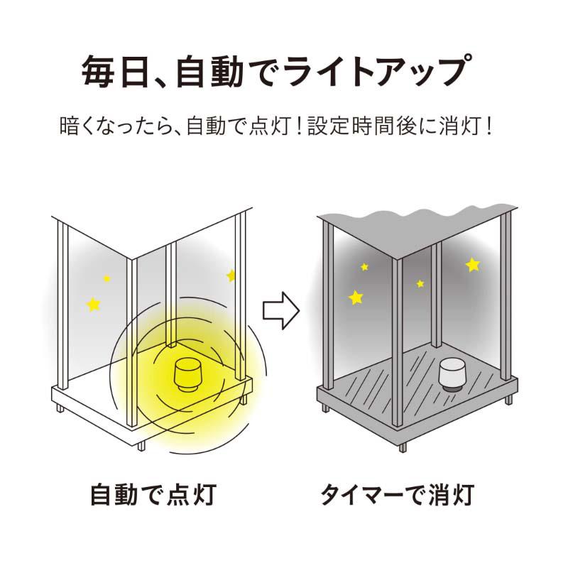・暗くなったら、自動で点灯!設定時間後に消灯!毎日自動でライトアップ!