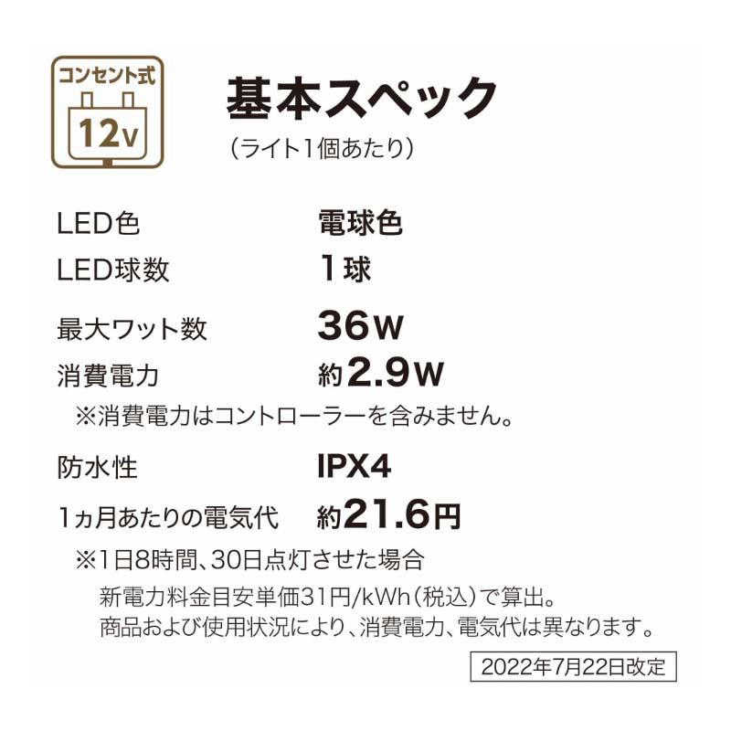 ・[LED数1球/1台あたり]電圧:12V、消費電力:約2.9W