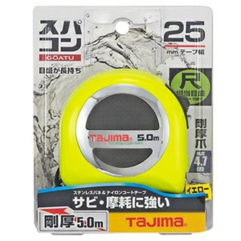 スチールテープに特殊塗装と目盛印刷を施し、ナイロンを被覆したナイロンコートテープで、サビ・折れ・摩耗に強く、汚れは水洗いできます。