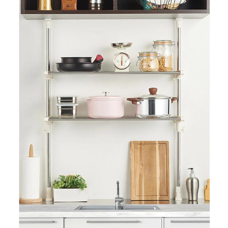 ベストコ ステンレス 突っ張り キッチンラック 2段 グレー 灰 灰色 キッチン つっぱり 収納 整理 ワイド 棚 ラック 丈夫 清潔 組み立て 工具不要 台所 シンク