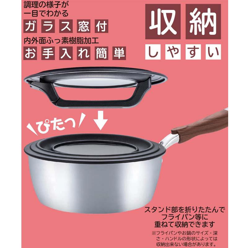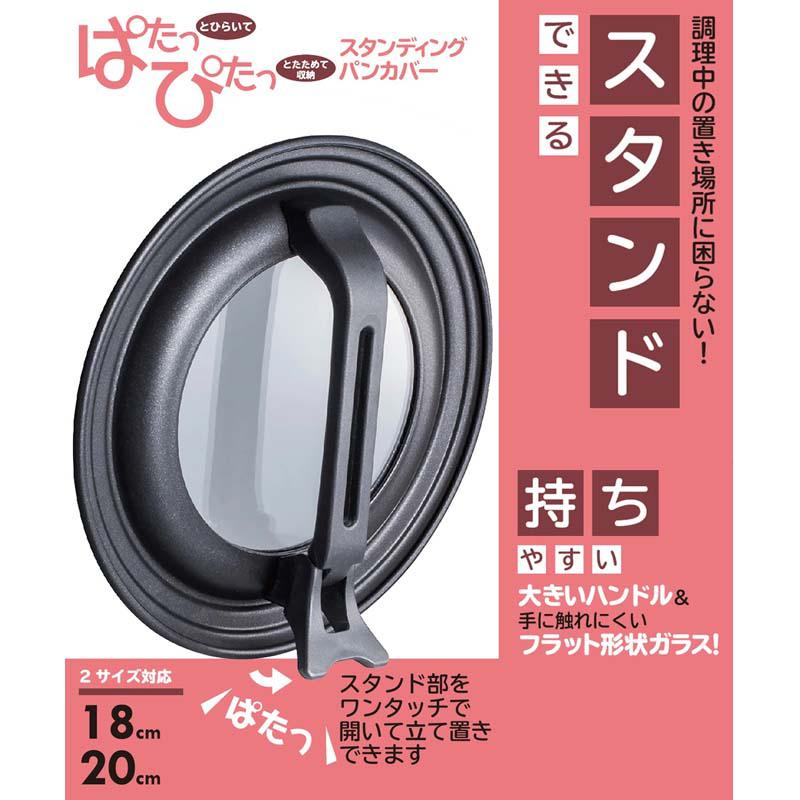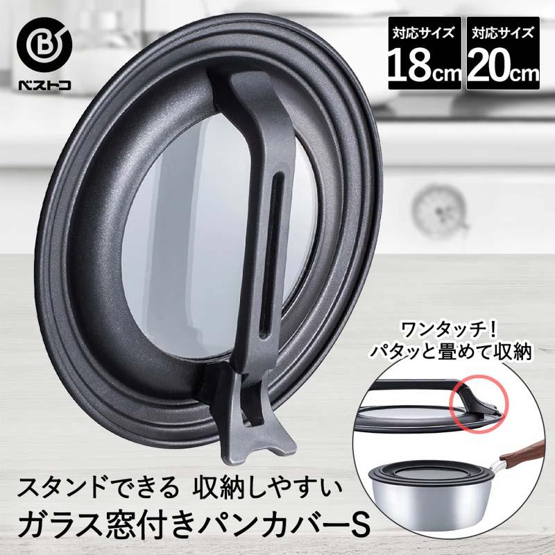 ベストコ フライパン ガラス蓋 スタンド式 S 18cm 20cm 兼用 ND-8321 ぱたっぴたっ フタ カバー 持ち手 取っ手 黒 ブラック 窓付き ND-8321