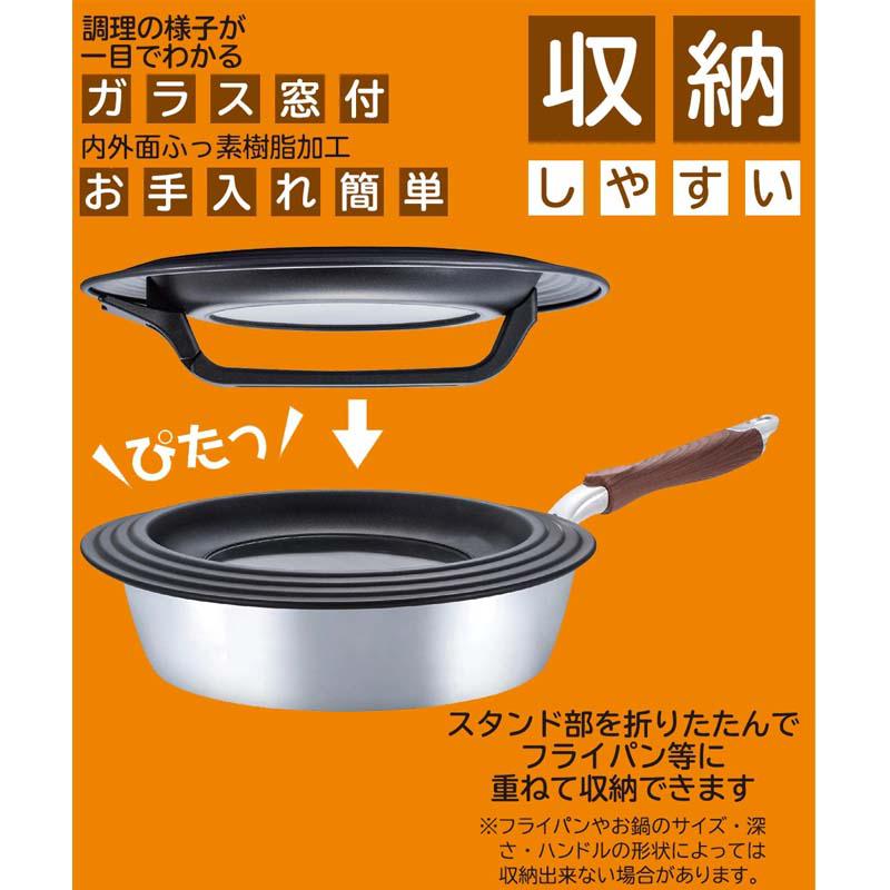 ベストコ フライパン ガラス蓋 スタンド式 L 26cm 28cm 30cm 兼用 ND-8323 ぱたっぴたっ ND-8323