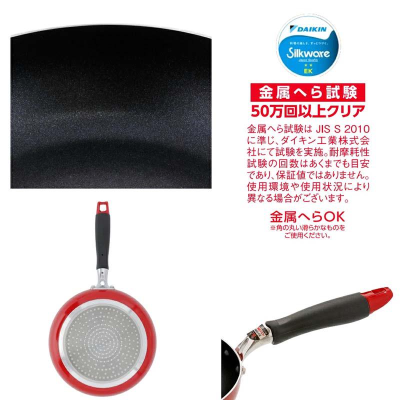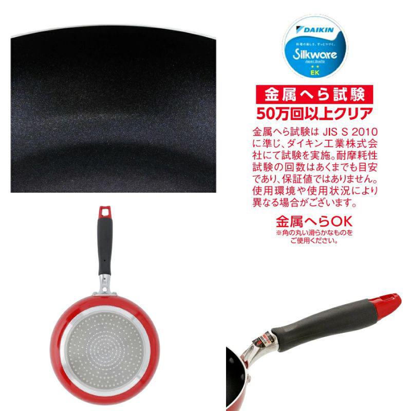 フライパン IH ガス 20cm 傷防止 傷つかない 金属ヘラ 赤 かわいい おしゃれ 汚れにくい 汚れ防止 お手入れ 耐久 料理 朝食 キッチン 炒め