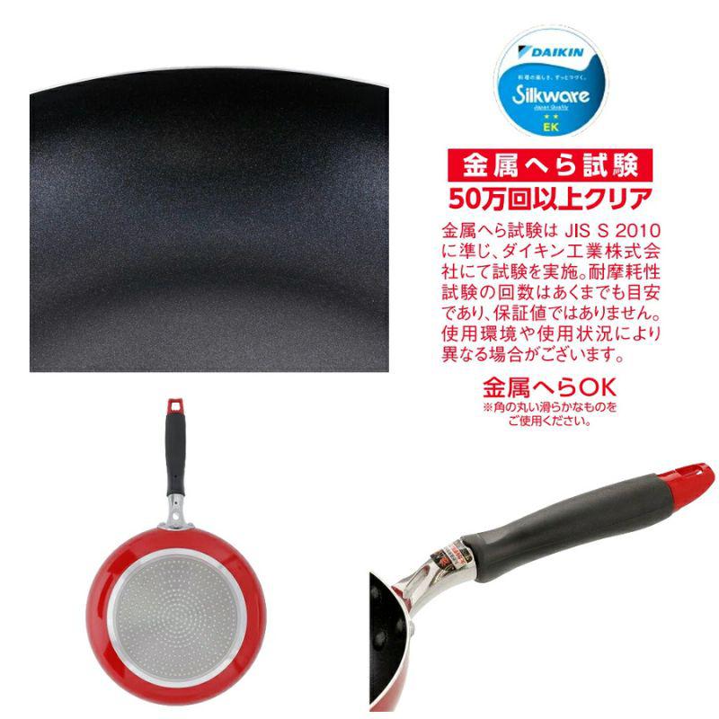フライパン IH ガス 傷防止 傷つかない 金属ヘラ 赤 かわいい おしゃれ 汚れにくい 汚れ防止 お手入れ 耐久 料理 朝食 キッチン 26cm