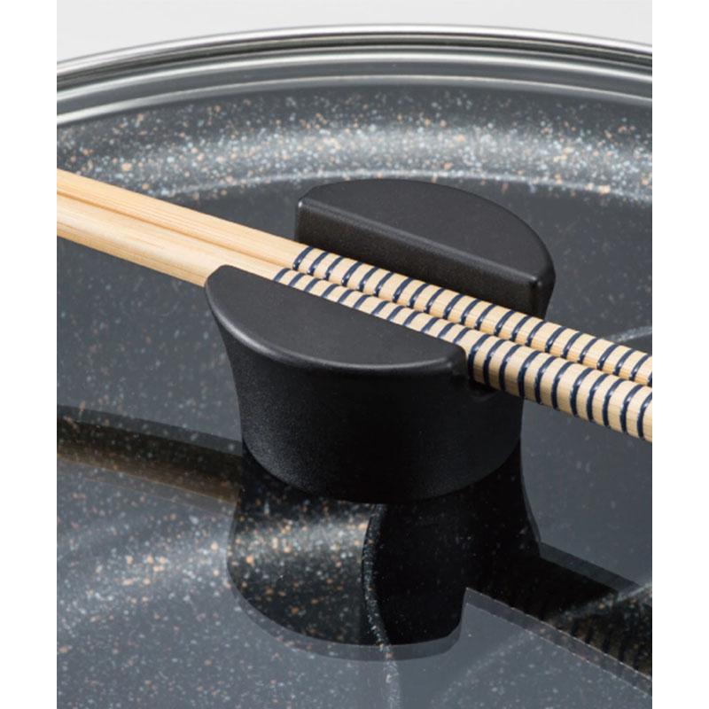 ベストコ IH 二食鍋 ガラス蓋付 26cm マーブルダイヤモンドコート ND-4591 ビストロ・ドゥエシェルタ ふた付き オール熱源 ガス 鍋 黒 ブラック ND-4591