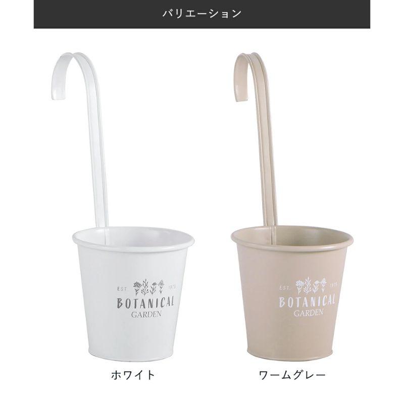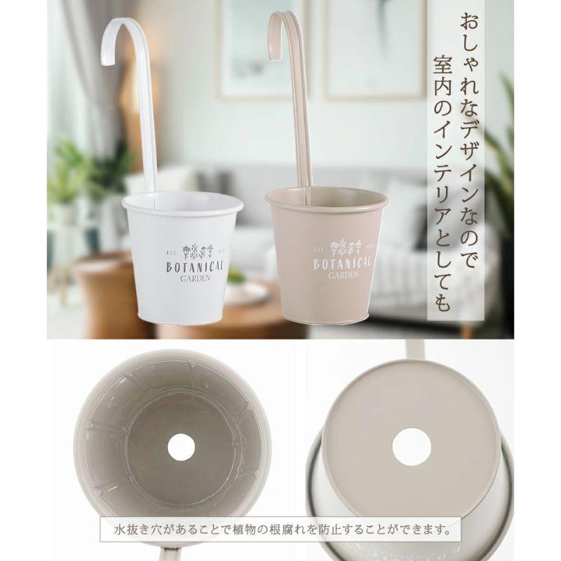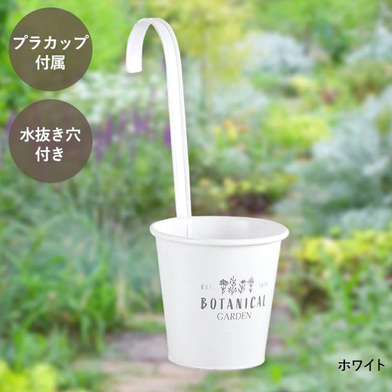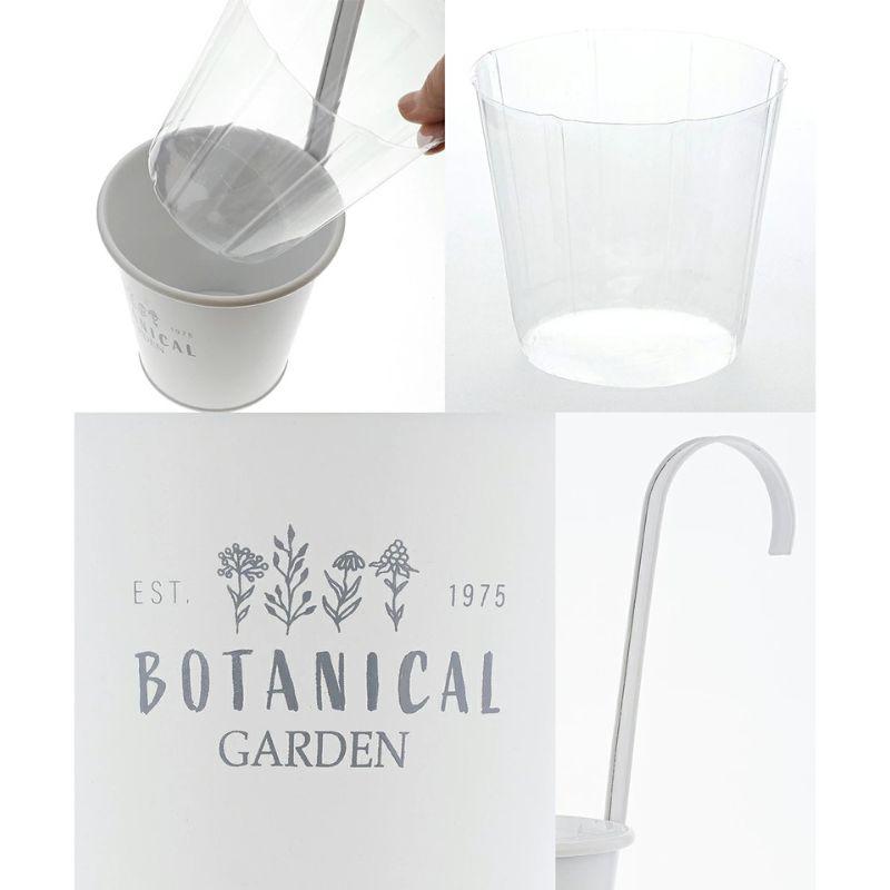 ボタニカル アンティーク ガーデン ハンキング ポット ハンドル ブリキ 鉢 カバー 小物 おしゃれ かわいい アメリカン 雑貨 インテリア 花 フラワー 植物 植木鉢 室内 屋外 ベランダ カップ付 水抜き穴 ホワイト