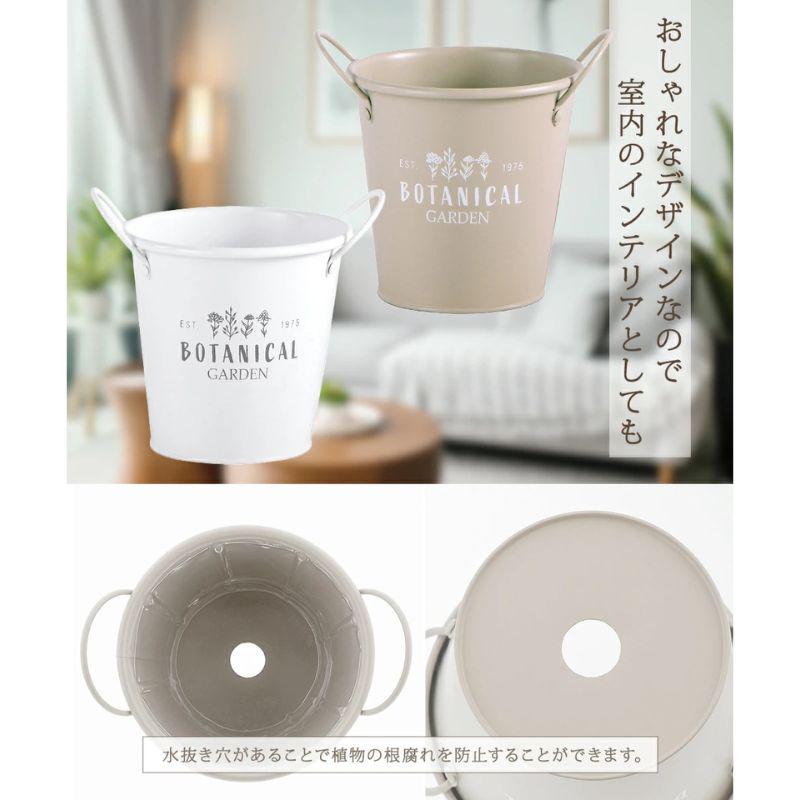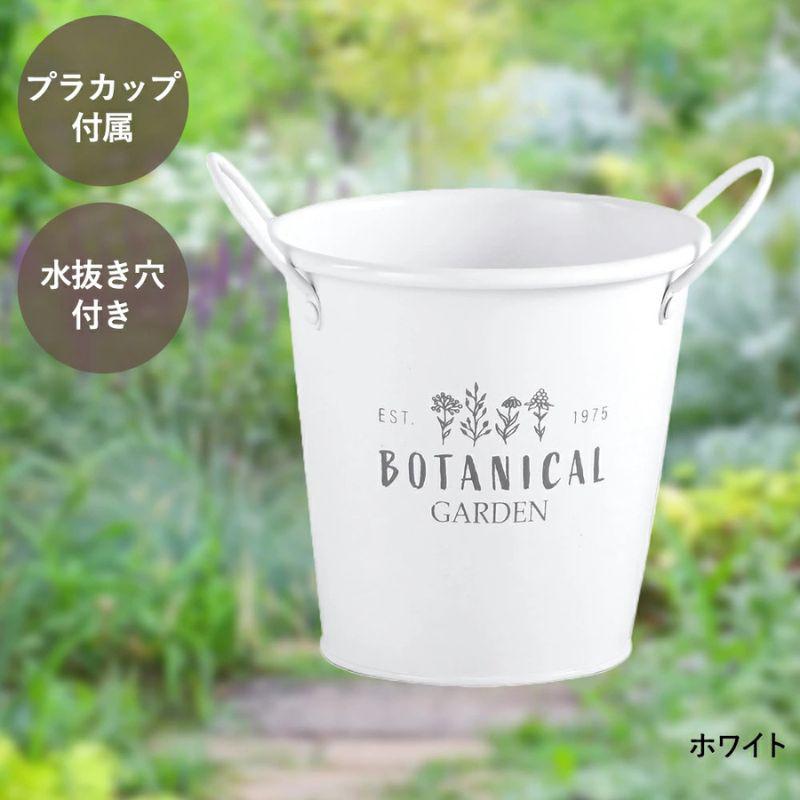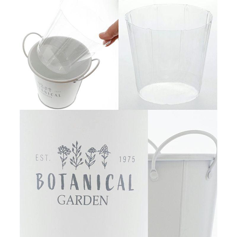ボタニカル アンティーク ガーデン ポット M ブリキ 鉢 カバー 小物 おしゃれ かわいい アメリカン 雑貨 インテリア 花 フラワー 植物 植木鉢 室内 屋外 ベランダ カップ付 水抜き穴 ホワイト