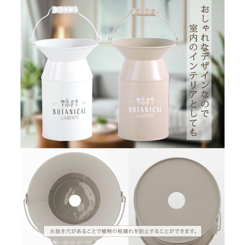 ボタニカル アンティーク ガーデン ポット S ブリキ 鉢 カバー 小物 おしゃれ かわいい アメリカン 雑貨 インテリア 花 フラワー 植物 植木鉢 室内 屋外 ベランダ カップ付 水抜き穴 ホワイト