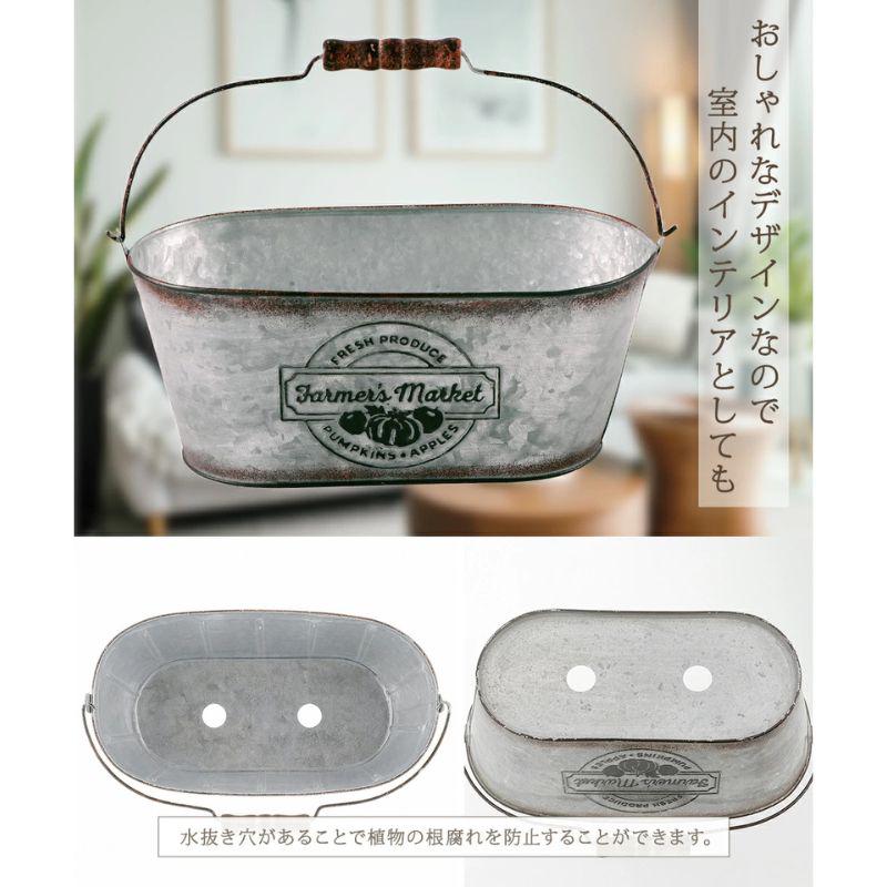 アンティーク ガーデン オーバル ポット M ブリキ 鉢 カバー 小物 おしゃれ かわいい アメリカン 雑貨 インテリア 花 フラワー 植物 植木鉢 室内 屋外 ベランダ カップ付 水抜き穴