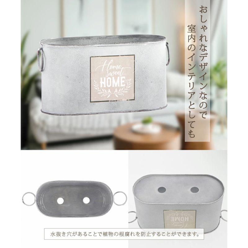 ホーム アンティーク ガーデン オーバル ポット S ブリキ 鉢 カバー 小物 おしゃれ かわいい アメリカン 雑貨 インテリア 花 フラワー 植物 植木鉢 室内 屋外 ベランダ カップ付 水抜き穴