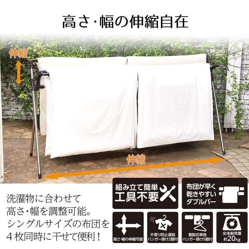 ●シングルサイズの布団4枚を同時に干すことができる幅235cmの布団干し