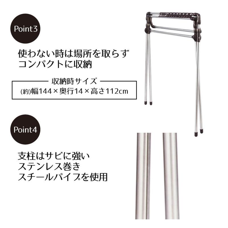 ●支柱はサビに強いステンレス巻きスチールパイプ