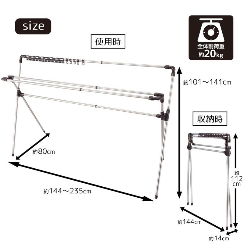 ○サイズ(約)[使用時]幅:144~235cm 奥行:80cm 高さ:101〜141cm[収納時]幅:144cm 奥行:14cm 高さ:112cm