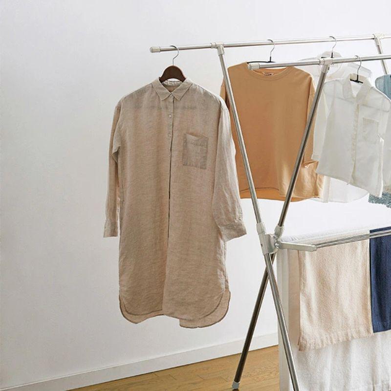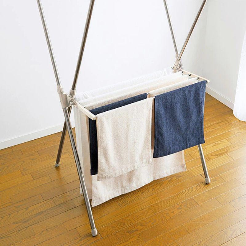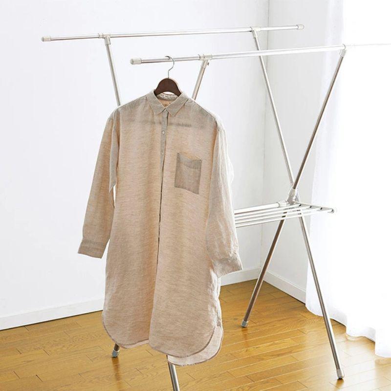 ●上段が伸縮!洗濯物の量によって調整できる室内用X型物干し