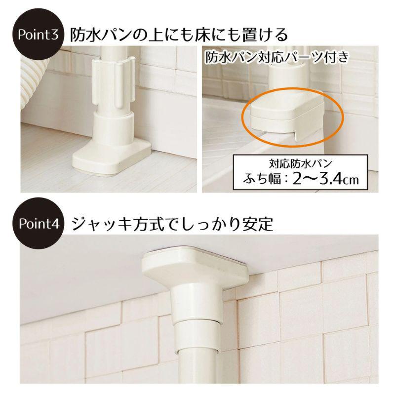 ●防水パンにも床にも使用可能。(防水パン対応パーツ付、防水パンのふち幅2〜3.4cmに対応)