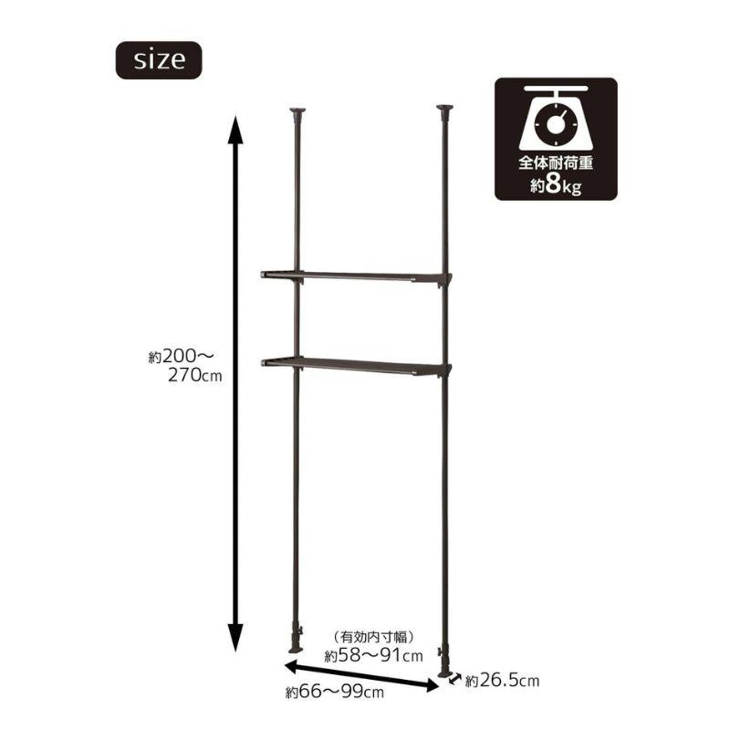 ○サイズ (約) 幅:66〜99cm(有効内寸幅:58〜91cm) 奥行:26.5cm 高さ:200~270cm