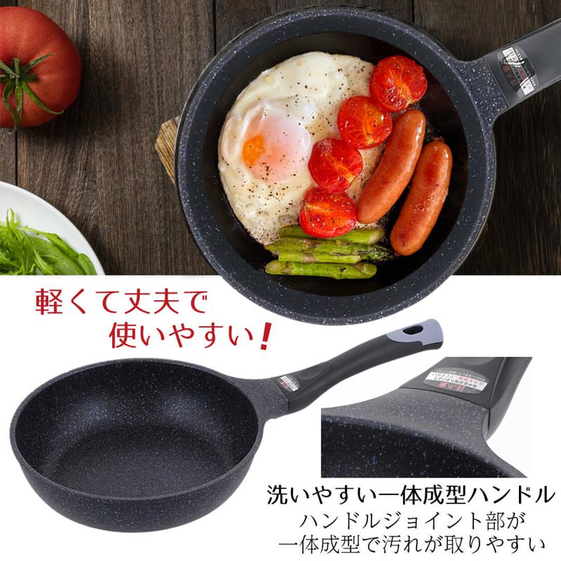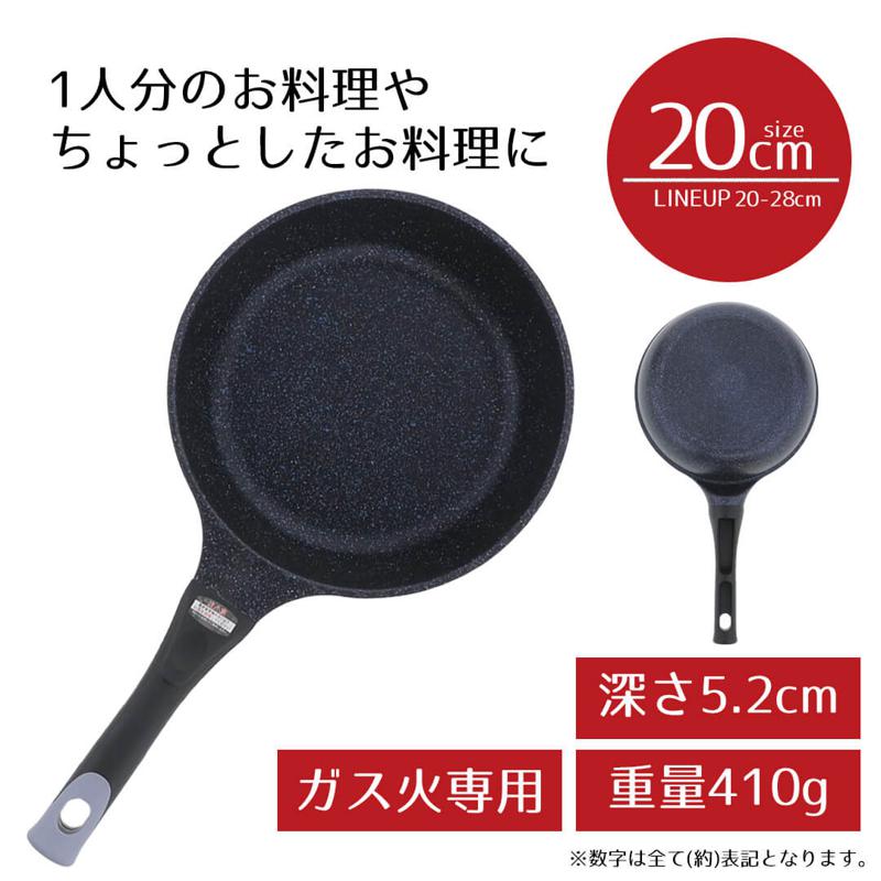 フライパン 20cm ガス火 ガス マーブル ダイヤモンドコート ふっ素樹脂加工 お手入れ簡単 耐久性 マーブル 熱変形に強い 丈夫
