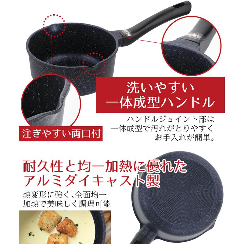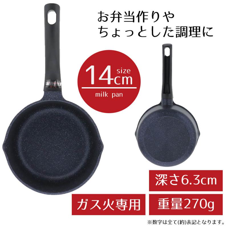 ミニ 片手鍋 ミルクパン 14cm ガス火 ガス マーブル ダイヤモンドコート ふっ素樹脂加工 お手入れ簡単 耐久性 マーブル 熱変形に強い 丈夫 お弁当 一人暮らし