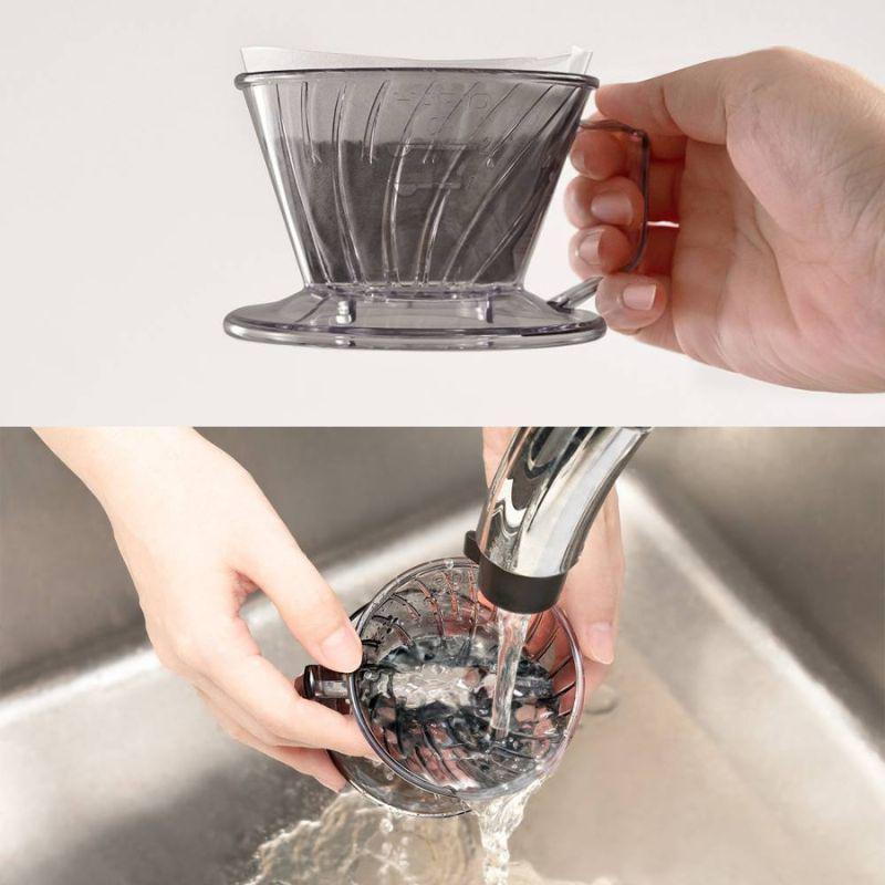 ハリオ HARIO コーヒー 珈琲 ドリッパー 1〜2人用 1〜2杯用 ドリップ 台形 のぞき穴 2つ穴 1杯 2杯 1人 2人 目盛り メモリ 食洗機 杯数目盛り 台形型 コーヒードリッパー