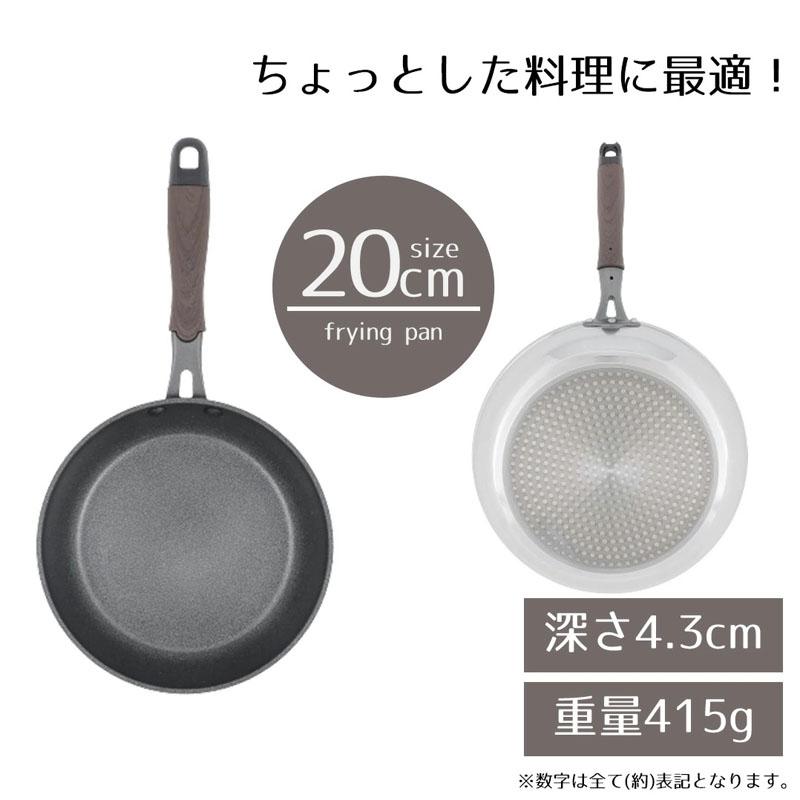 フライパン 20cm IH ガス ガス火 オール熱源 フッ素 長持ち 焦げ付きにくい ミラー仕上げ 金属ヘラ対応 お手入れ簡単 シンプル スタイリッシュ
