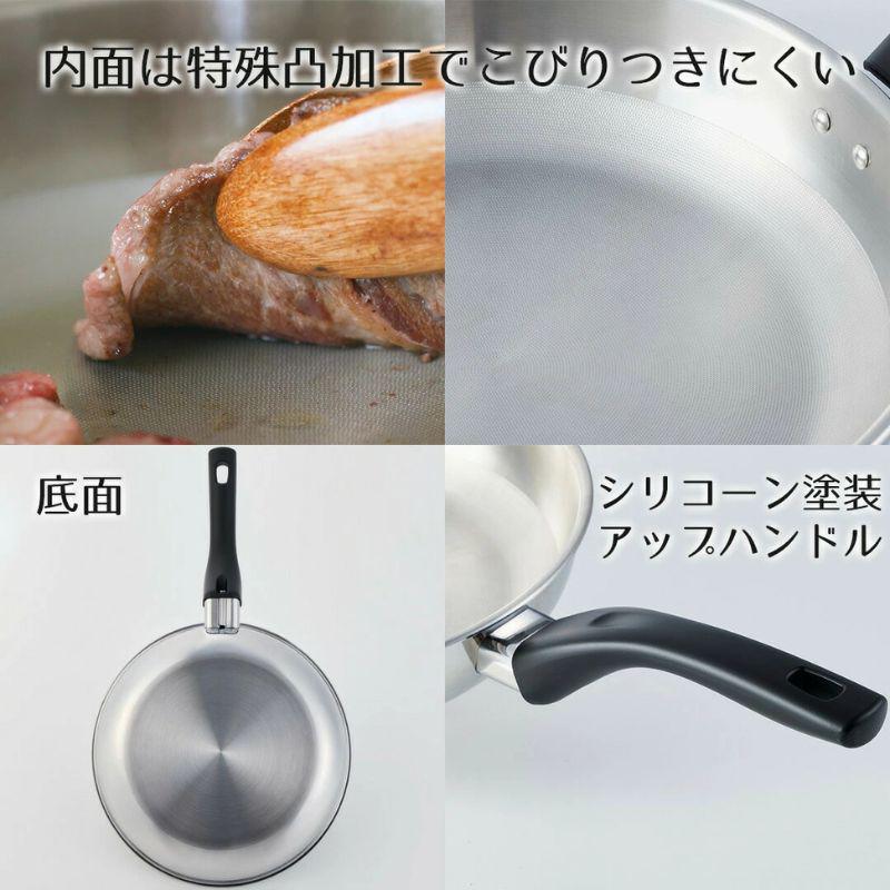 フライパン 20cm IH ガス ガス火 オール熱源 こびりつきにくい さびにくい アップハンドル ステンレス ミラー仕上げ 金属ヘラ対応 お手入れ簡単 シンプル スタイリッシュ