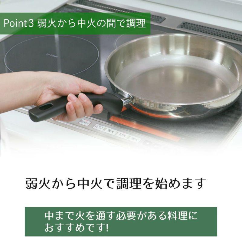 ・三層鋼の本体は蓄熱性がよく、熱ムラが生じにくいです。