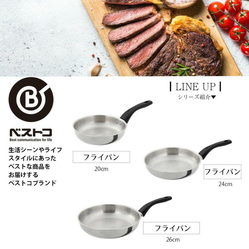 ベストコ フライパン 20cm IH ガス火対応 ミラー ステンレス ND−241