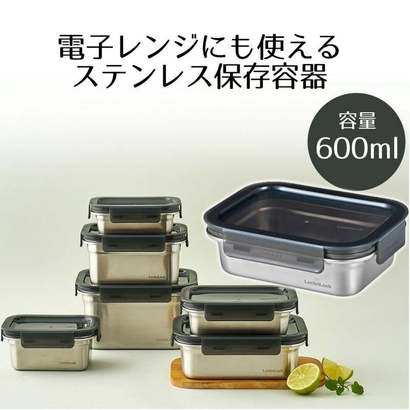 ベストコ ステンレス 保存容器 電子レンジ オーブン 食洗機 対応 600ml 長方形 シルバー ロック&ロック ステンハード LST513 LST513
