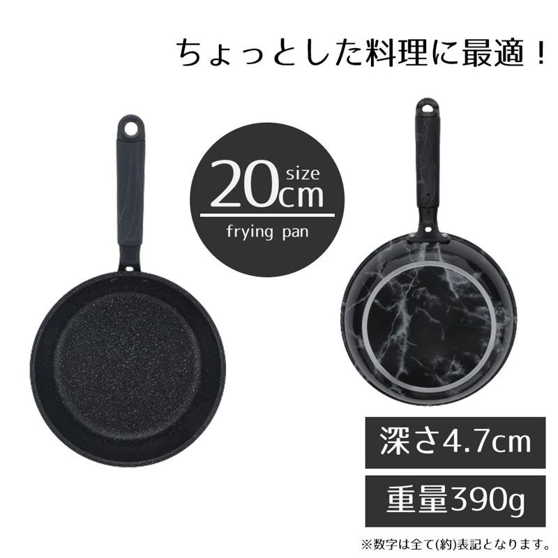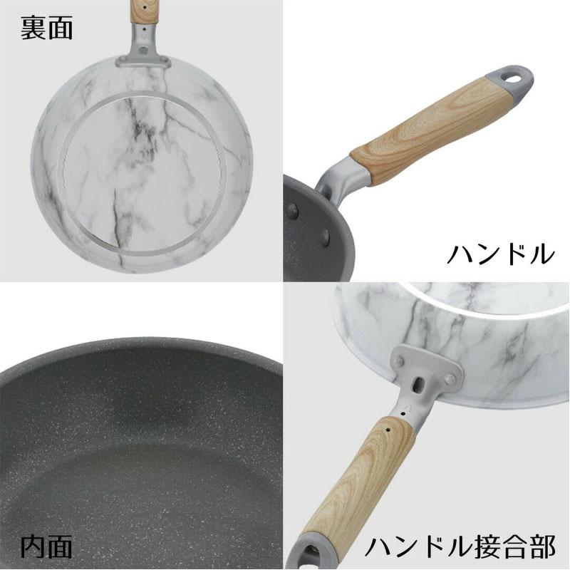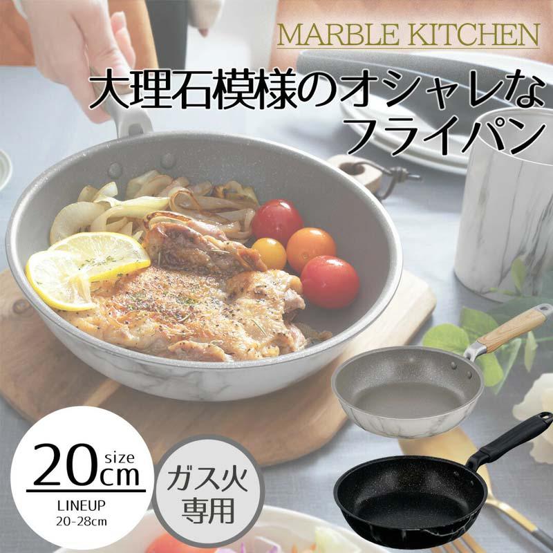 フライパン 20cm ガス ガス火 ガス専用 ガス火専用 大理石模様 大理石 マーブル シルバーマーブル おしゃれ 北欧 北欧風 エレガント ホワイト 白 フッ素 お手入れ簡単