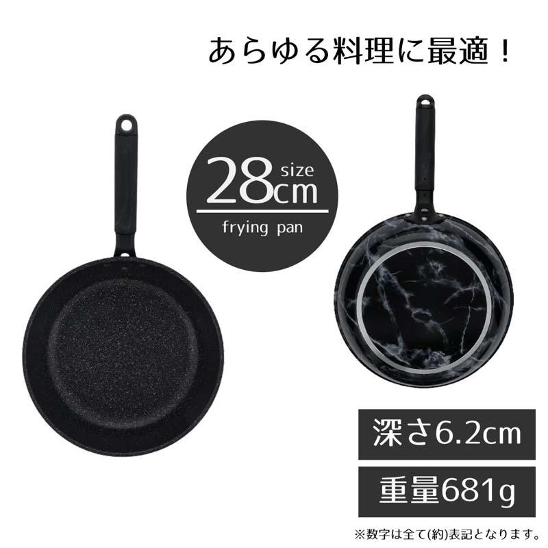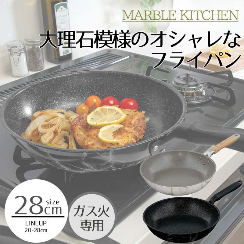 フライパン 28cm ガス ガス火 ガス専用 ガス火専用 大理石模様 大理石 マーブル シルバーマーブル おしゃれ 北欧 北欧風 エレガント ホワイト 白 フッ素 お手入れ簡単