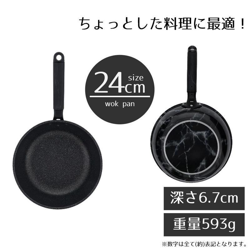 フライパン 深型 24cm ガス ガス火 ガス専用 ガス火専用 大理石模様 大理石 マーブル シルバーマーブル おしゃれ 北欧 北欧風 エレガント ブラック 黒 フッ素 お手入れ簡単 ウォックパン