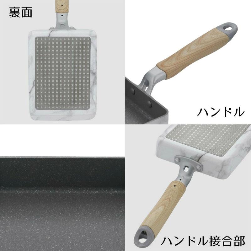 玉子焼き器 卵焼き 玉子焼き IH ガス ガス火 オール熱源 大理石模様 大理石 マーブル シルバーマーブル おしゃれ 北欧 北欧風 エレガント ホワイト 白 フッ素 お手入れ簡単