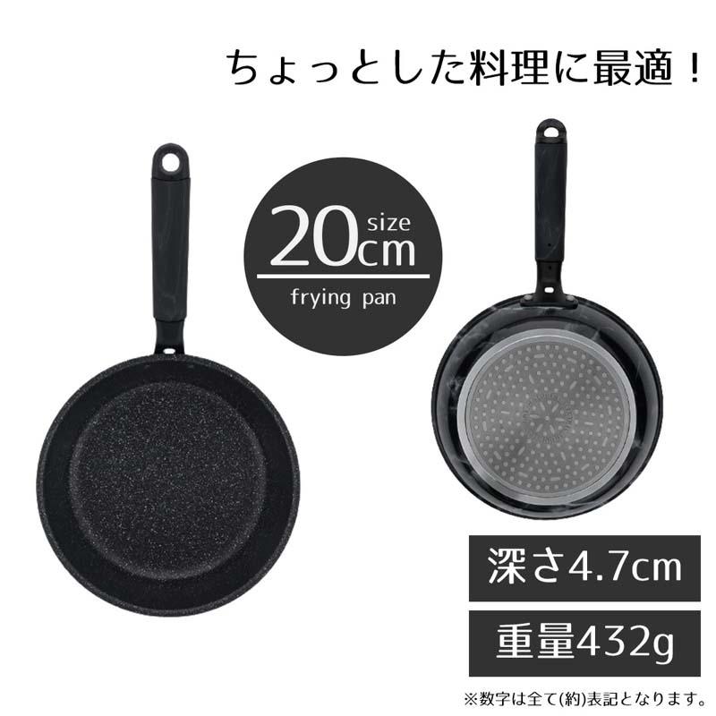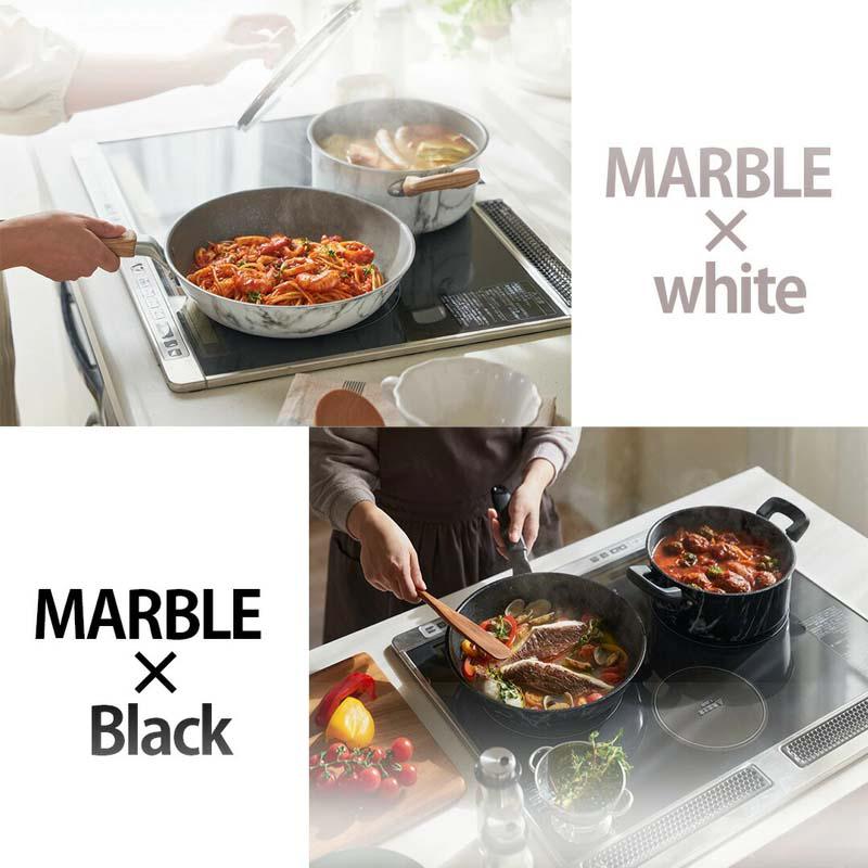 フライパン 26cm IH ガス ガス火 オール熱源 大理石模様 大理石 マーブル シルバーマーブル おしゃれ 北欧 北欧風 エレガント ブラック 黒 フッ素 お手入れ簡単