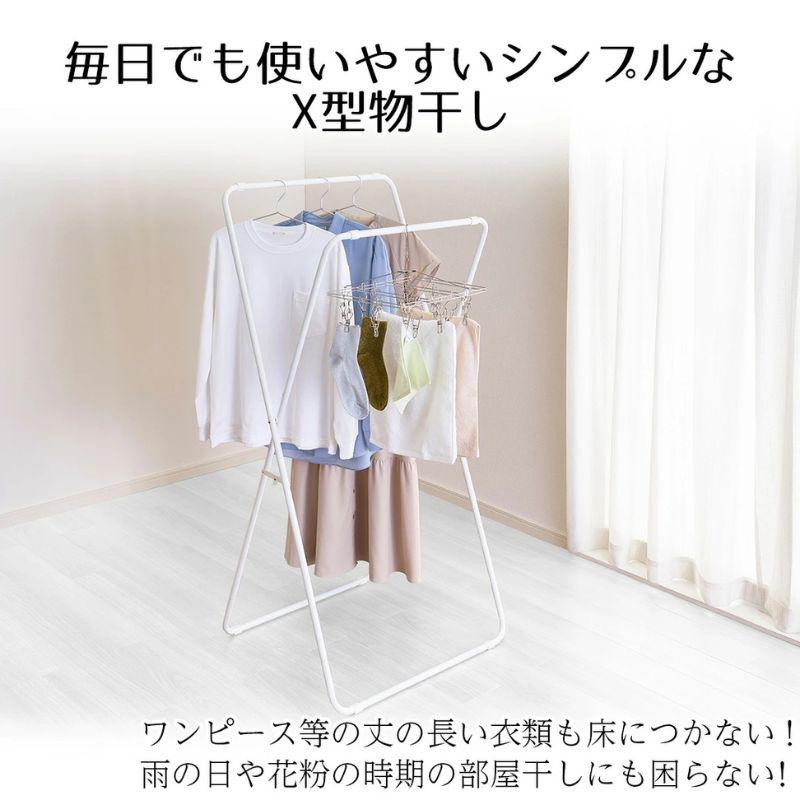 ベストコ 物干し 室内干し X型 組み立て簡単 工具不要 ホワイト 使いやすい コンパクト シンプル 軽い 収納 洗濯 室内 バスタオル 折りたたみ スタンド ハンガー落下防止 ワンピース
