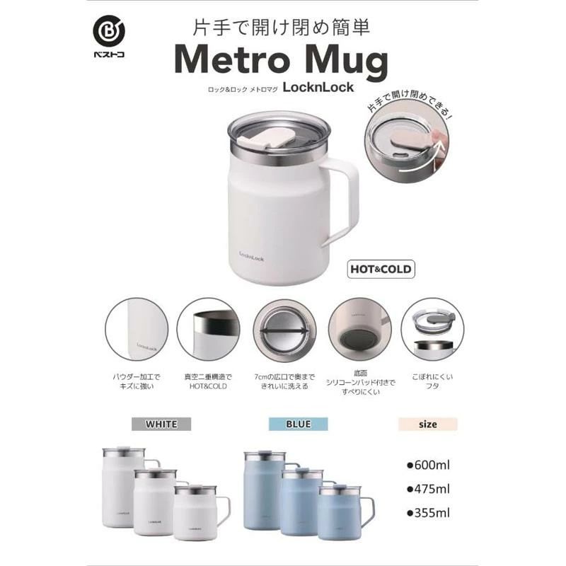 蓋付き こぼれにくい 洗いやすい 韓国 かわいい シンプル コーヒー LocknLock Metro Mug cup 水筒 節約 タンブラー 軽い 軽量 ホワイト 真空二重構造