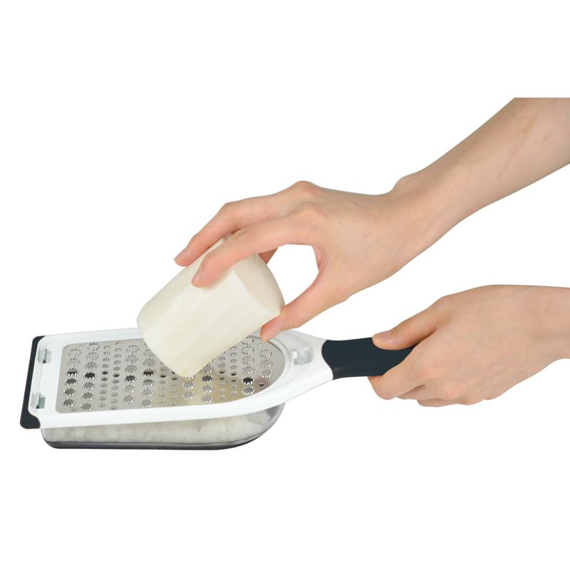 ●材質/プレート:ABS樹脂 容器:AS樹脂(耐熱温度90℃) おろし部:ステンレス鋼 ハンドルグリップ・すべり止め:熱可塑性エラストマー