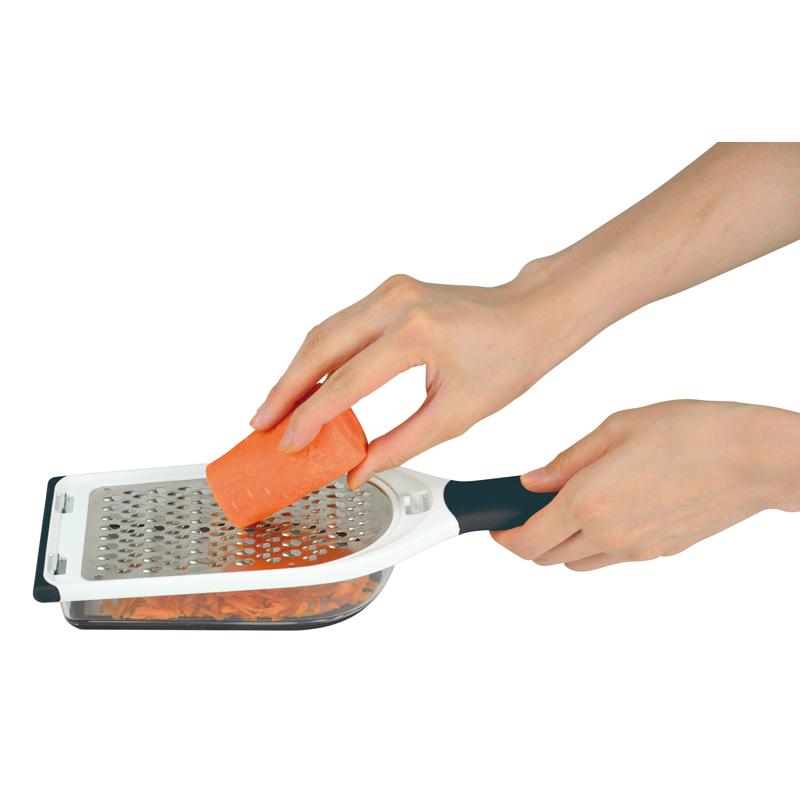 ●材質/プレート:ABS樹脂 容器:AS樹脂(耐熱温度90℃) 千切り部:ステンレス鋼 ハンドルグリップ・すべり止め:熱可塑性エラストマー