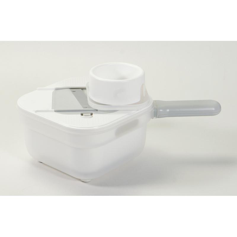 ●材質:ザル・ボウル:ポリプロピレン プレート・プレートベース・ふた・ハンドル:ポリスチレン 安全ホルダー・ホルダーガイド:ポリプロピレン 野菜押さえ:ポリスチレン すべり止め:熱可塑性エラストマー その他の材料:金属部:ステンレス鋼