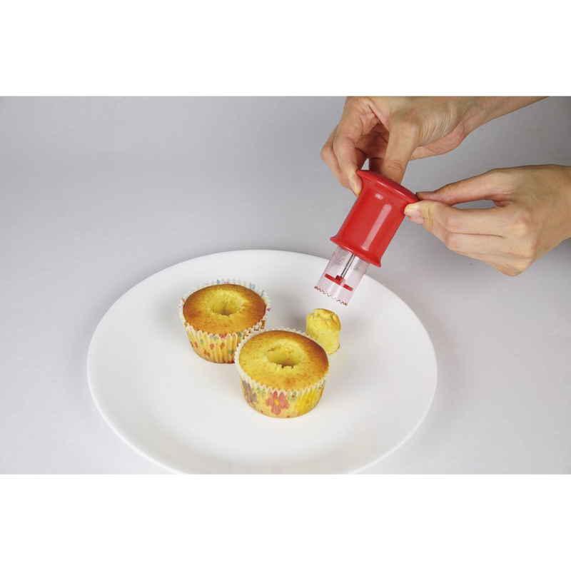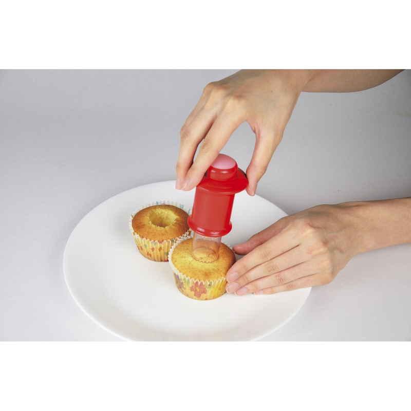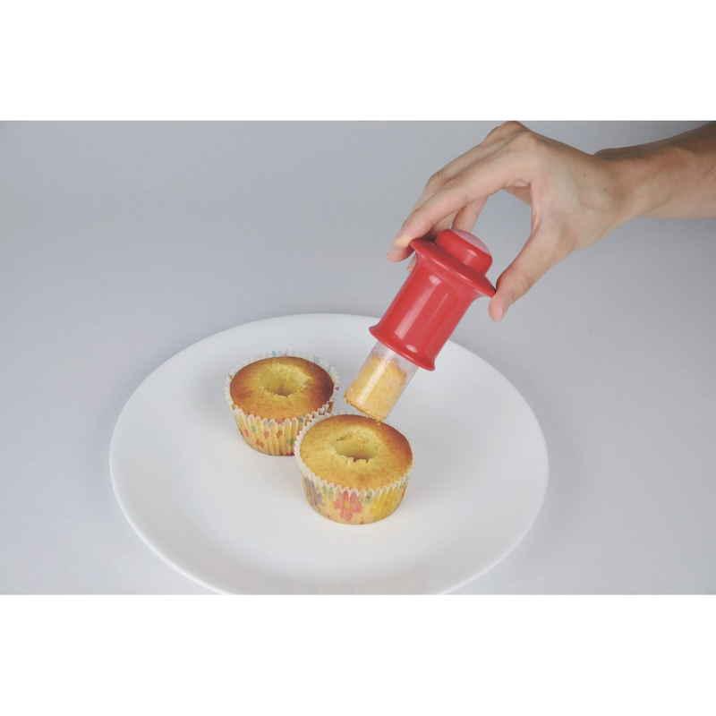 ポンッと押すだけで簡単にカップケーキに穴を開けられます。