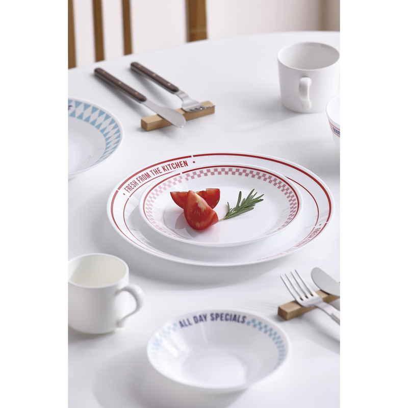 乳白色が練り込まれたガラスに、様々な柄がプリントされたデザインが食卓を明るく鮮やかに彩ります。