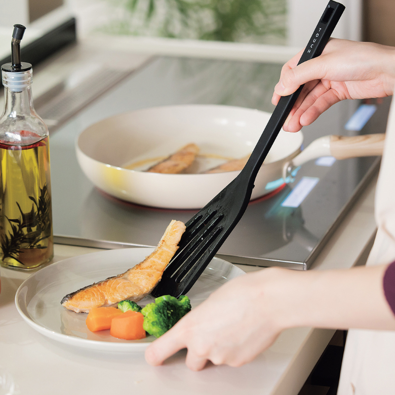 ・長物も返しやすいロングノーズ・先が付かないターナー・食洗機対応・シリコーン部 耐熱温度230度