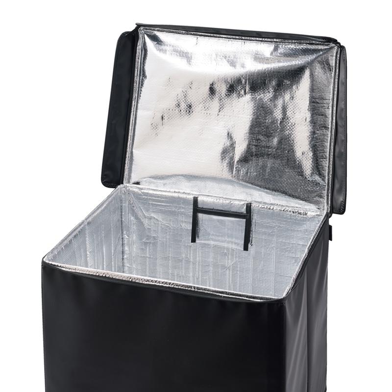 ●中はアルミ断熱材を使っているので、フードデリバリーの食べ物や飲み物を一時的に入れることも可能です。簡易タイプなので、使わないときは折りたたんで収納できます。