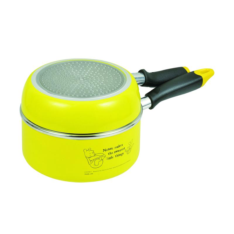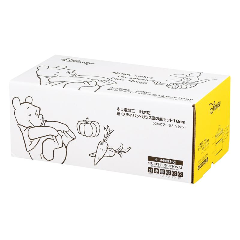 パール金属 ディズニー ふっ素加工IH対応鍋 ・フライパン・ガラス蓋3点セット18cm くまのプーさん/バッジ WD−9069