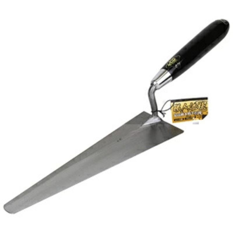 ブロックを積む際のモルタルのすくい、押さえ、はみ出したモルタルの掻き出し作業に適した形状です。