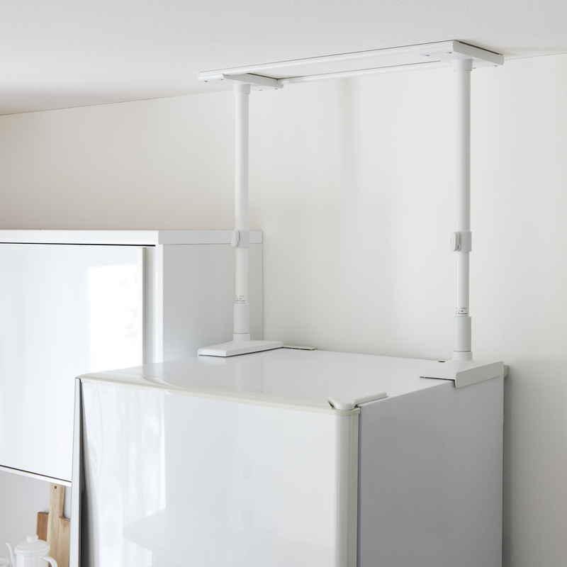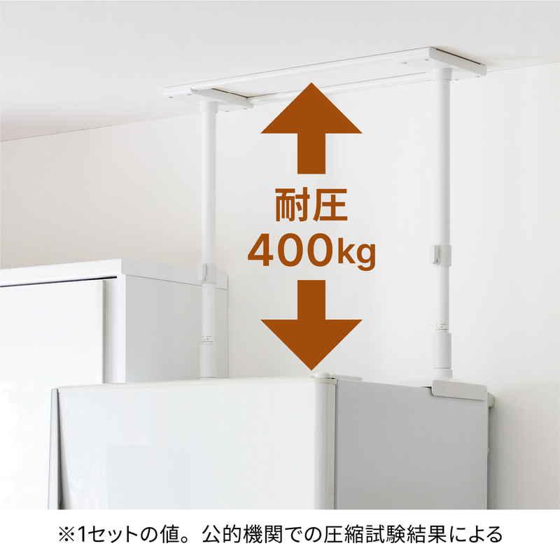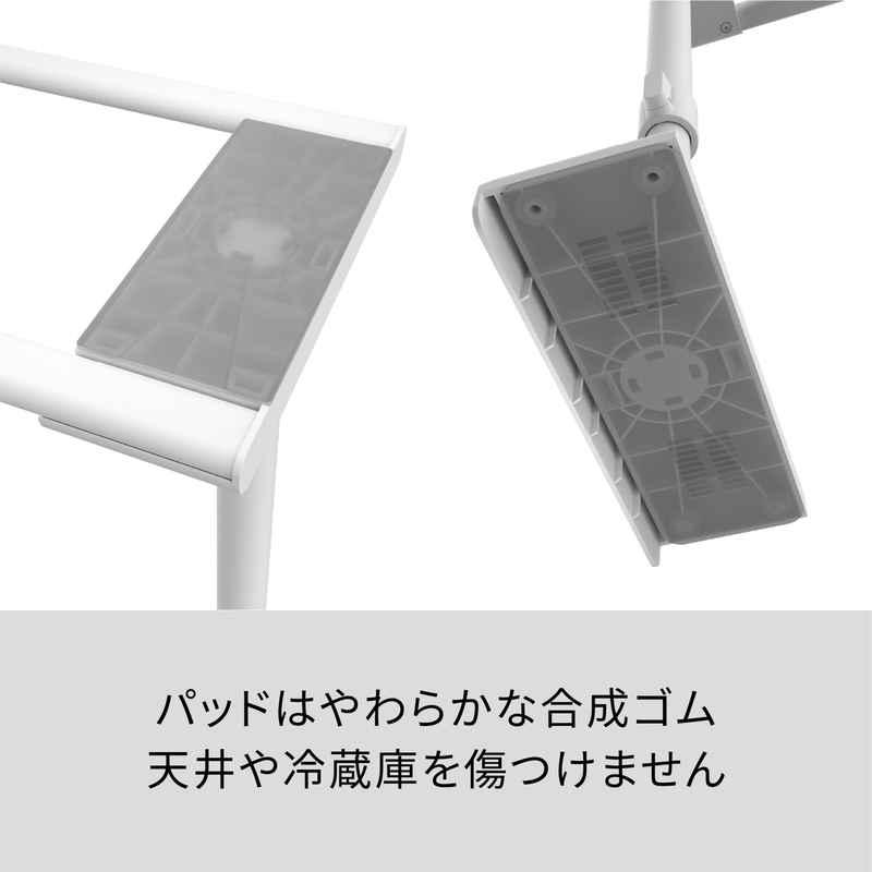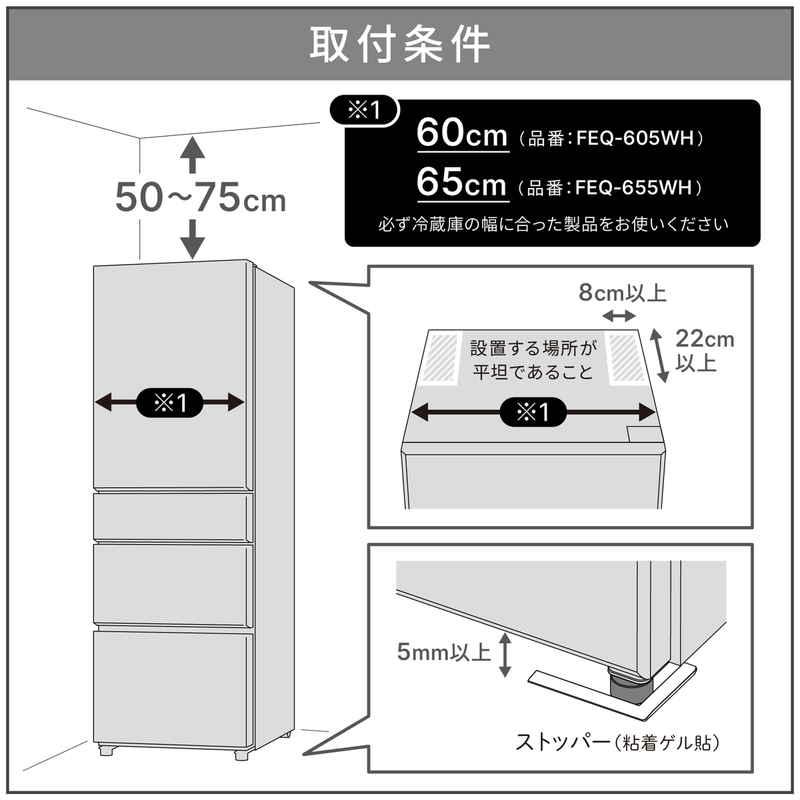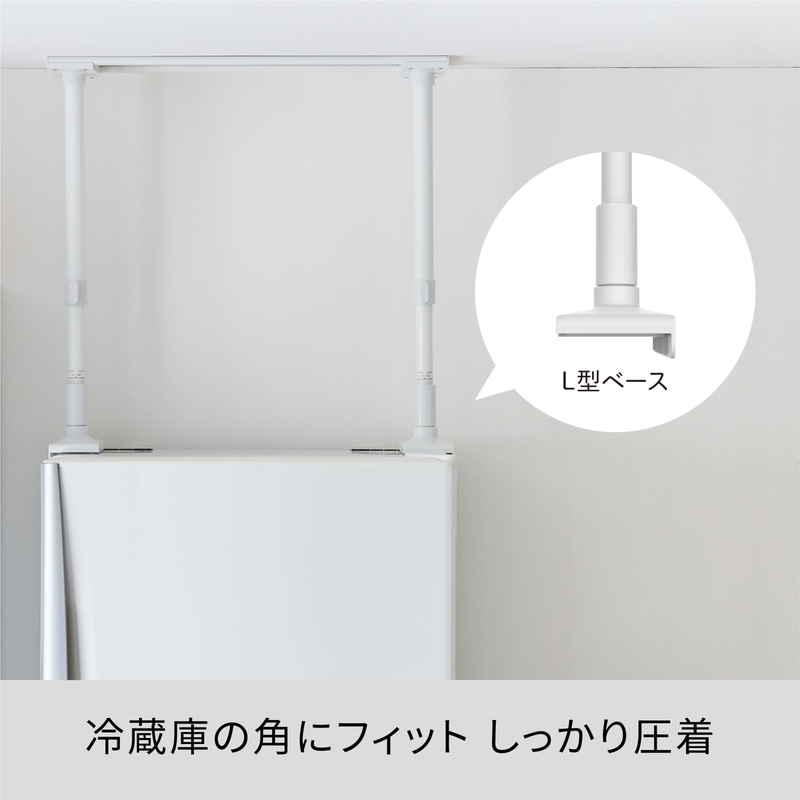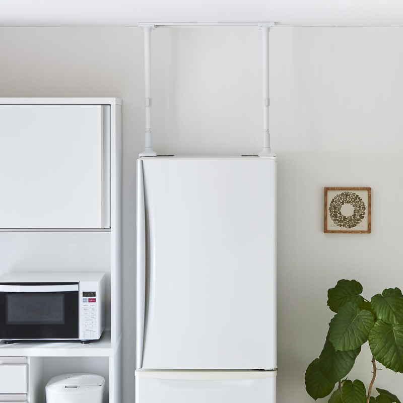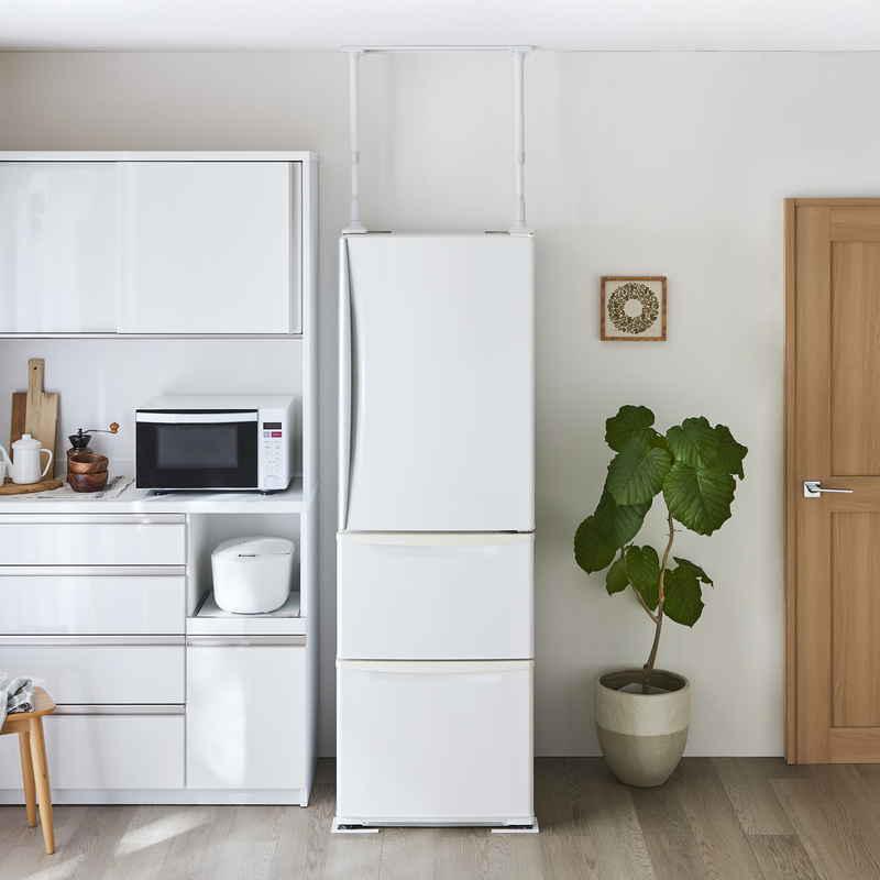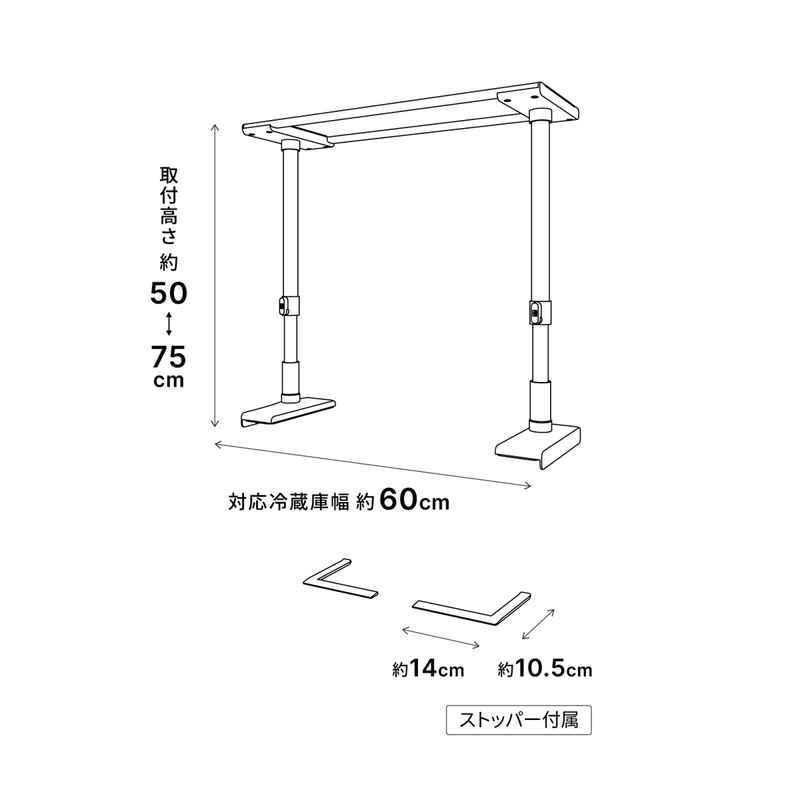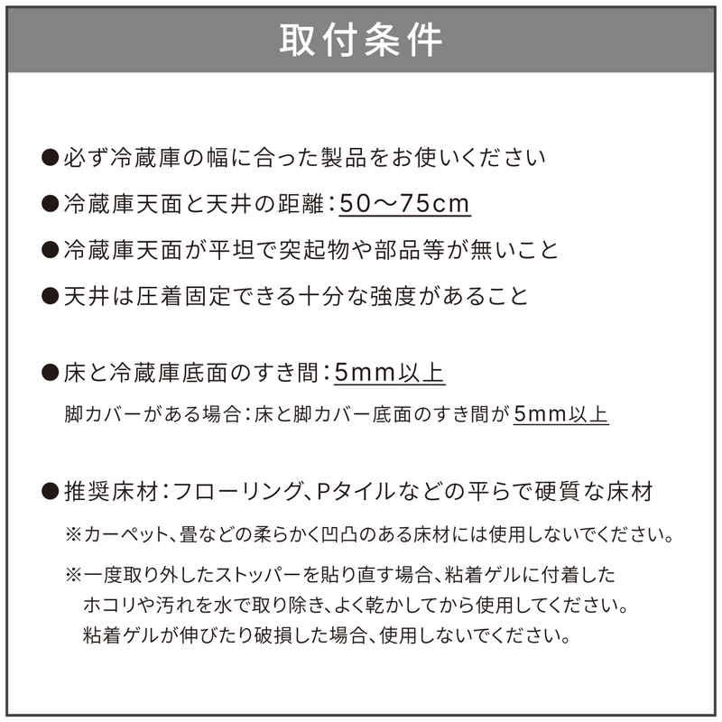 注意事項:※冷蔵庫天面と天井の距離が50〜75cm、床と冷蔵庫底面のすき間が5mm以上でご使用いただけます ※カーペット・畳などの柔らかい床材には使用しないでください ※パイプに防錆油が付着していることがあります