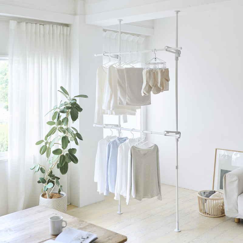スリムで場所をとらない突っ張り物干し2段タイプです。