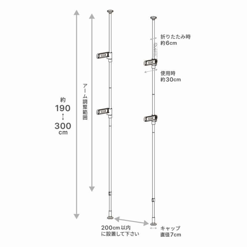 奥行30×高さ190〜300(cm) 取付け高さ範囲:約190〜300(cm) 重量:約3.4kg